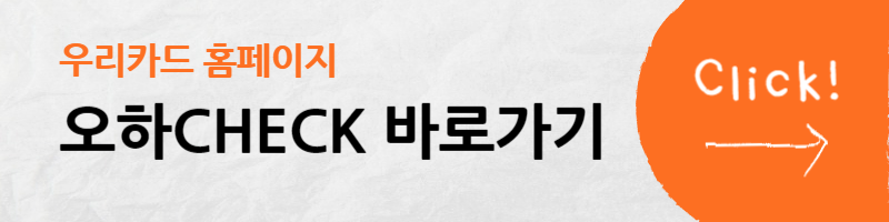 위 표의 내용보다 더 자세히 알고 싶으시다면, 아래 우리카드 홈페이지에서 정확한 정보를 확인하시는 것을 추천드립니다. 링크를 누르시면 카드의정석 오하쳌 신청페이지로 바로 이동할 수 있습니다.